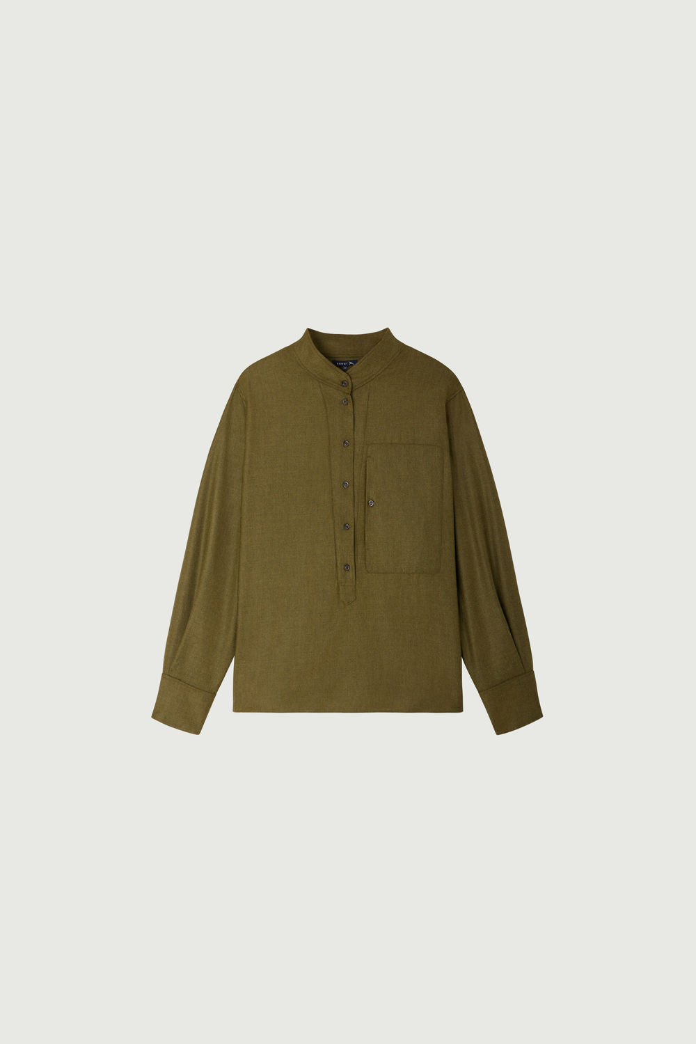 CROATIE is a lightweight flecked flannel blouse. Its straight and loose fit ensures a fluid and relaxed silhouette, perfect for a look that's both chic and comfortable.