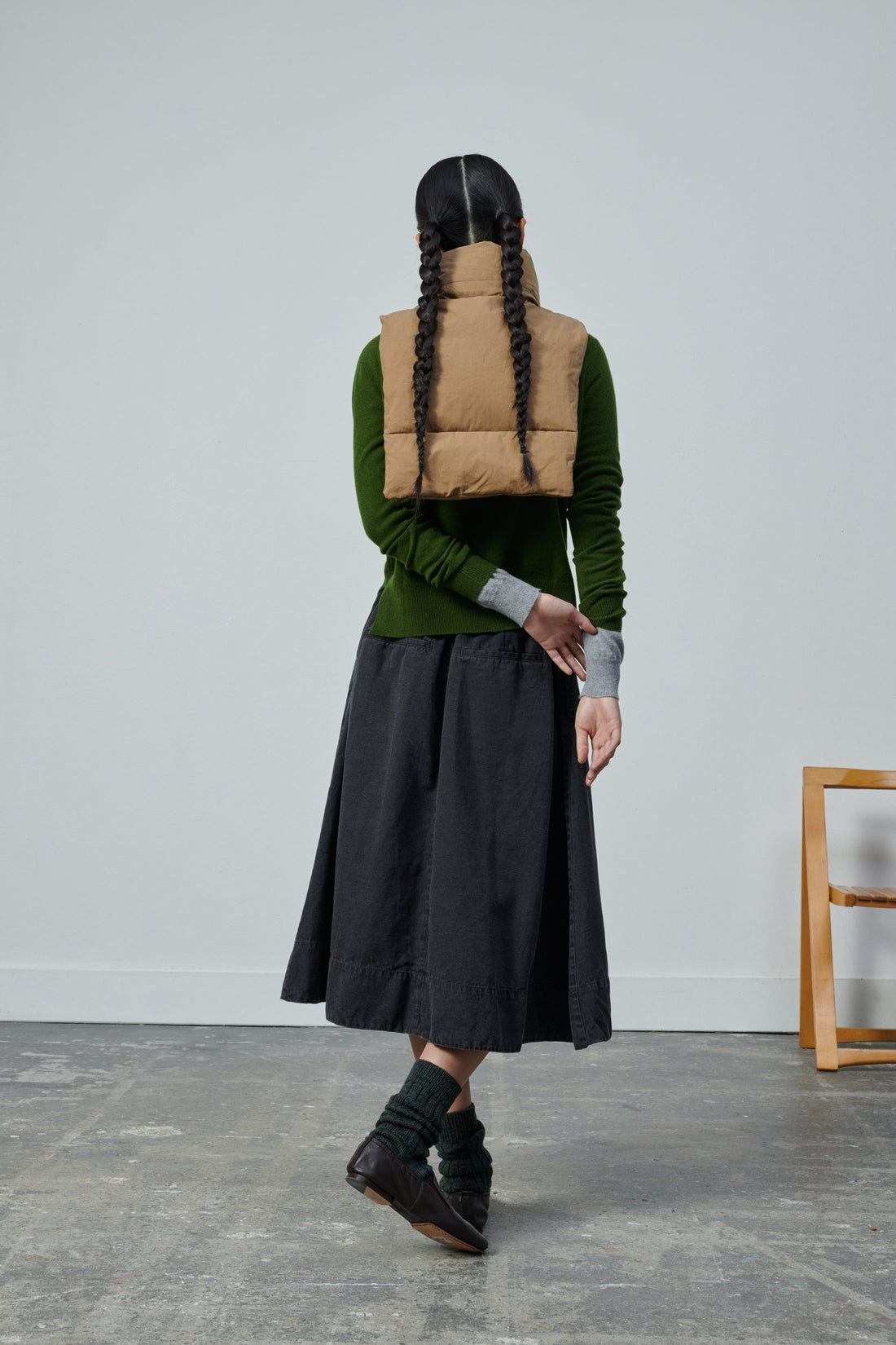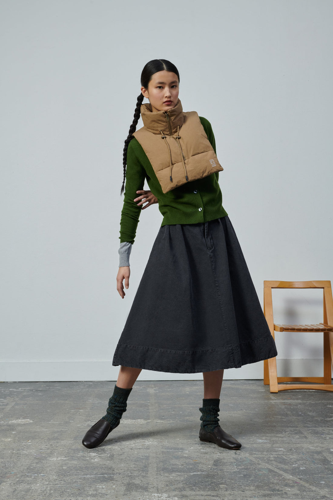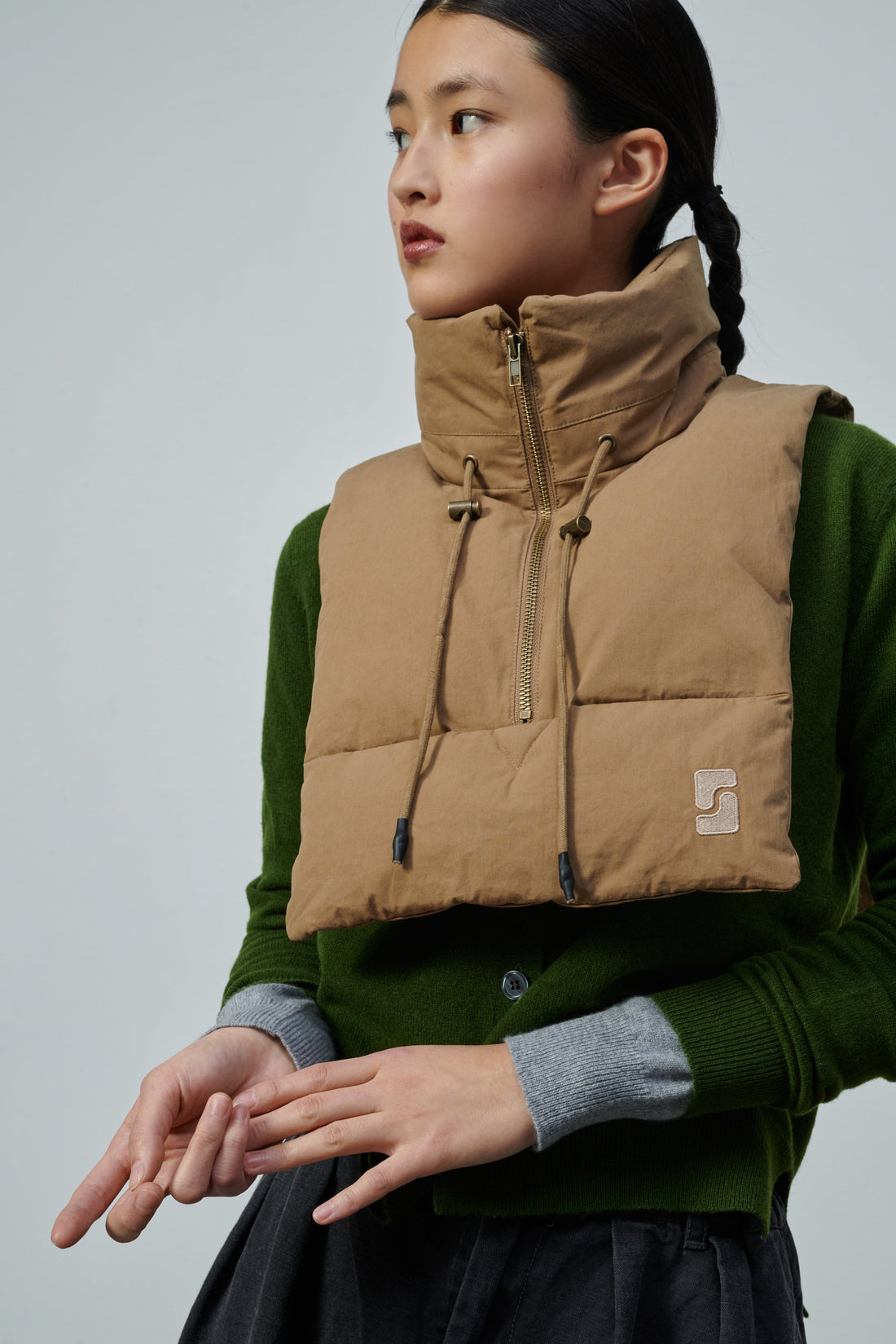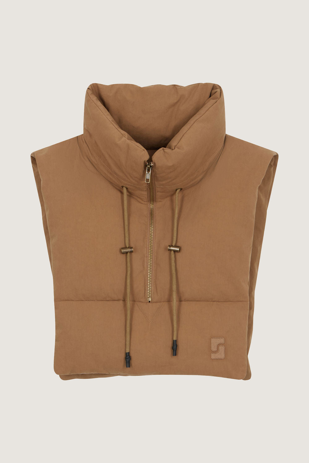 Water-repellent cotton padded collar - Sleeveless- Front zip fastening- Drawstring neckline