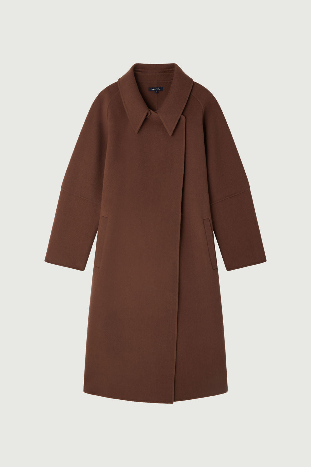 CHAMBERY is a long coat with a silhouette-hugging fit, crafted from double-faced wool in a soft rose-brown shade. It features a detachable collar with buttons and fastens with a removable belt for the perfect fit. The concealed seams accentuate the sophisticated and timeless cut.