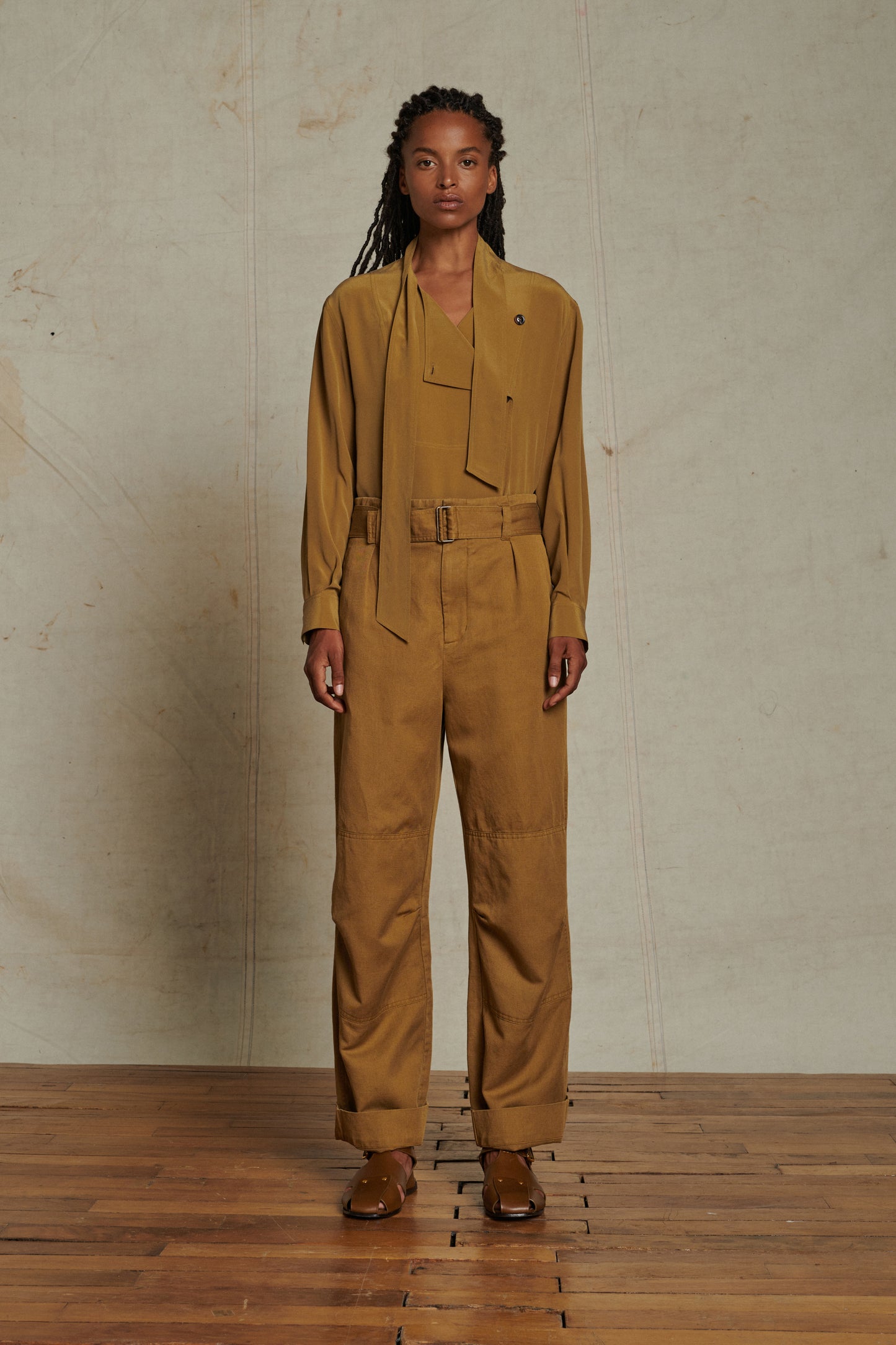 ANKARA is a soft, lightweight cotton canvas pant, perfect for transitioning into spring and summer. Its large front and back pockets echo the style of classic cargo pants. The knee patches and stitched pleats add a sporty touch to these everyday pants. The included belt allows for adjustable sizing.