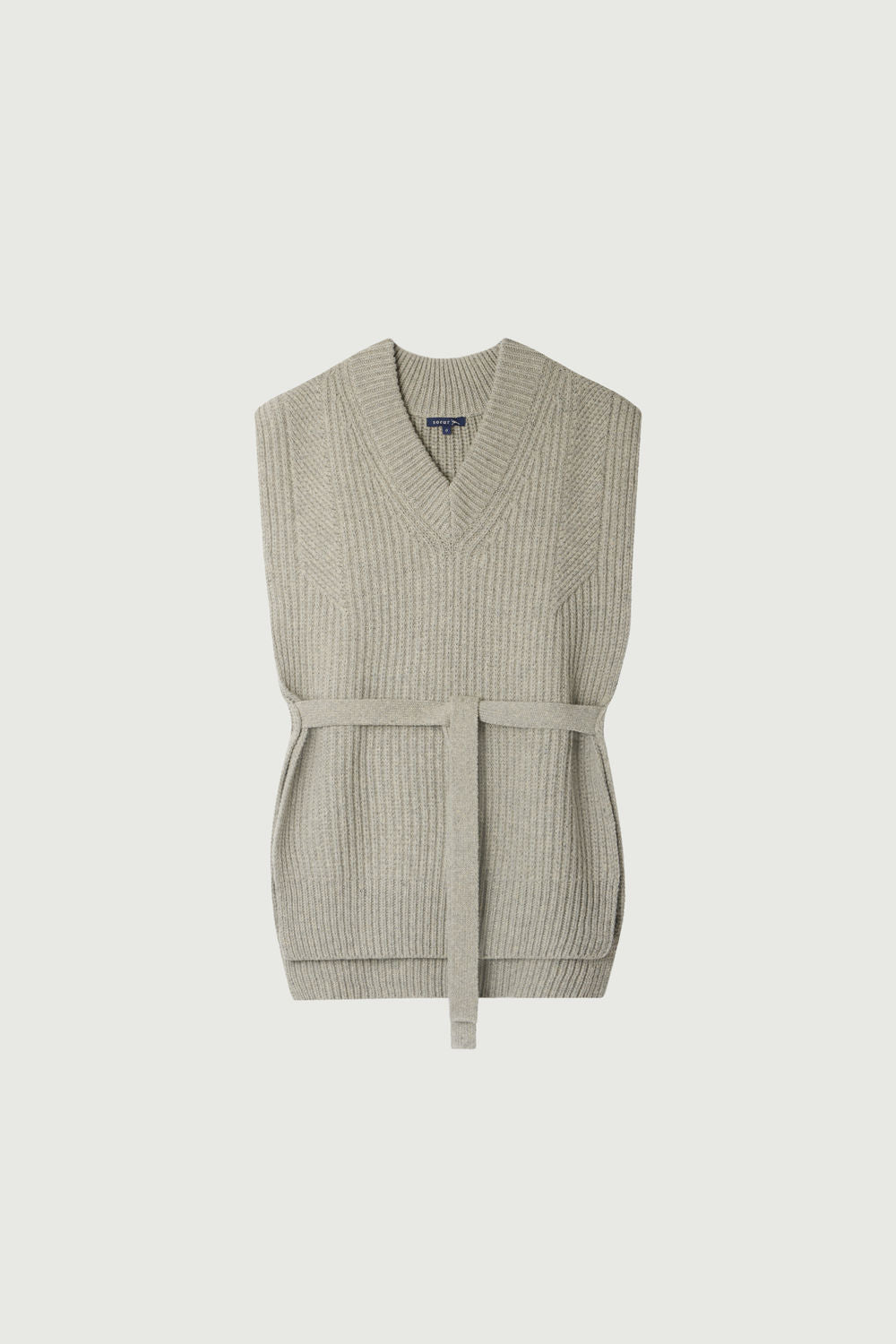 COSTA est un plastron droit, tricoté dans un fil de laine vierge. Rendu visuel par un effet de côtes, des liens sur les côtés se portent ceinturés pour marquer la taille, ou laissés suspendus. Un vêtement idéal pour réchauffer une tenue, tel une robe en soie ou une chemise liquette en coton.