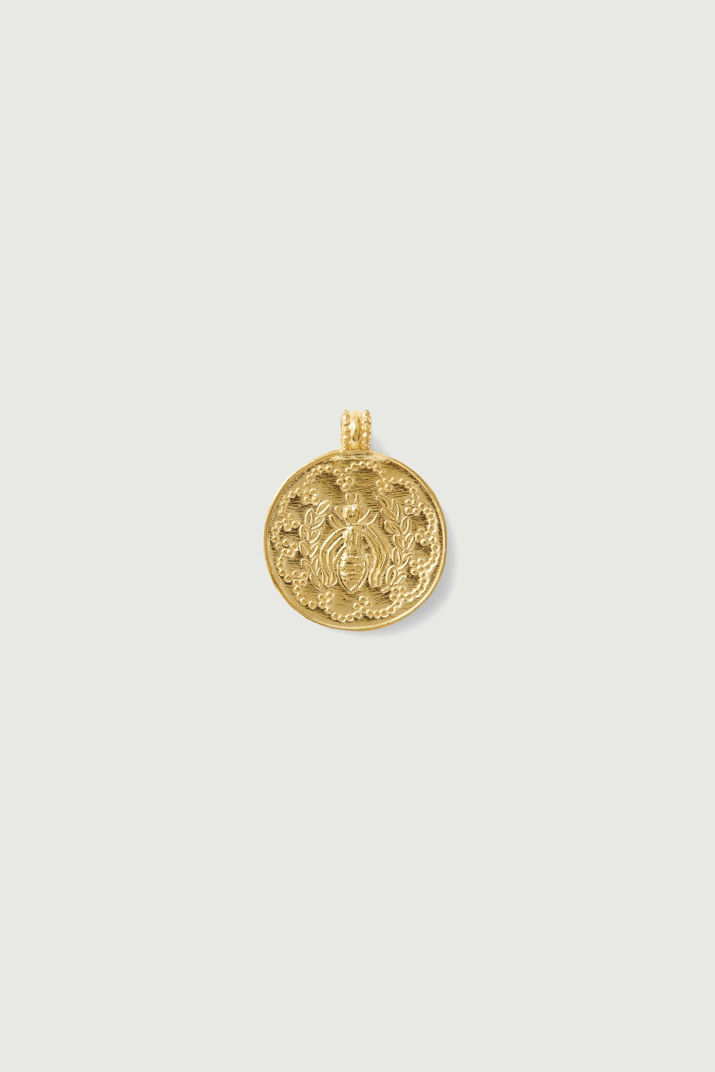 Domitille 3 è un ciondolo vermeil rotondo decorato con un'ape. I motivi all'interno della medaglia sono incisi dal martellamento.
