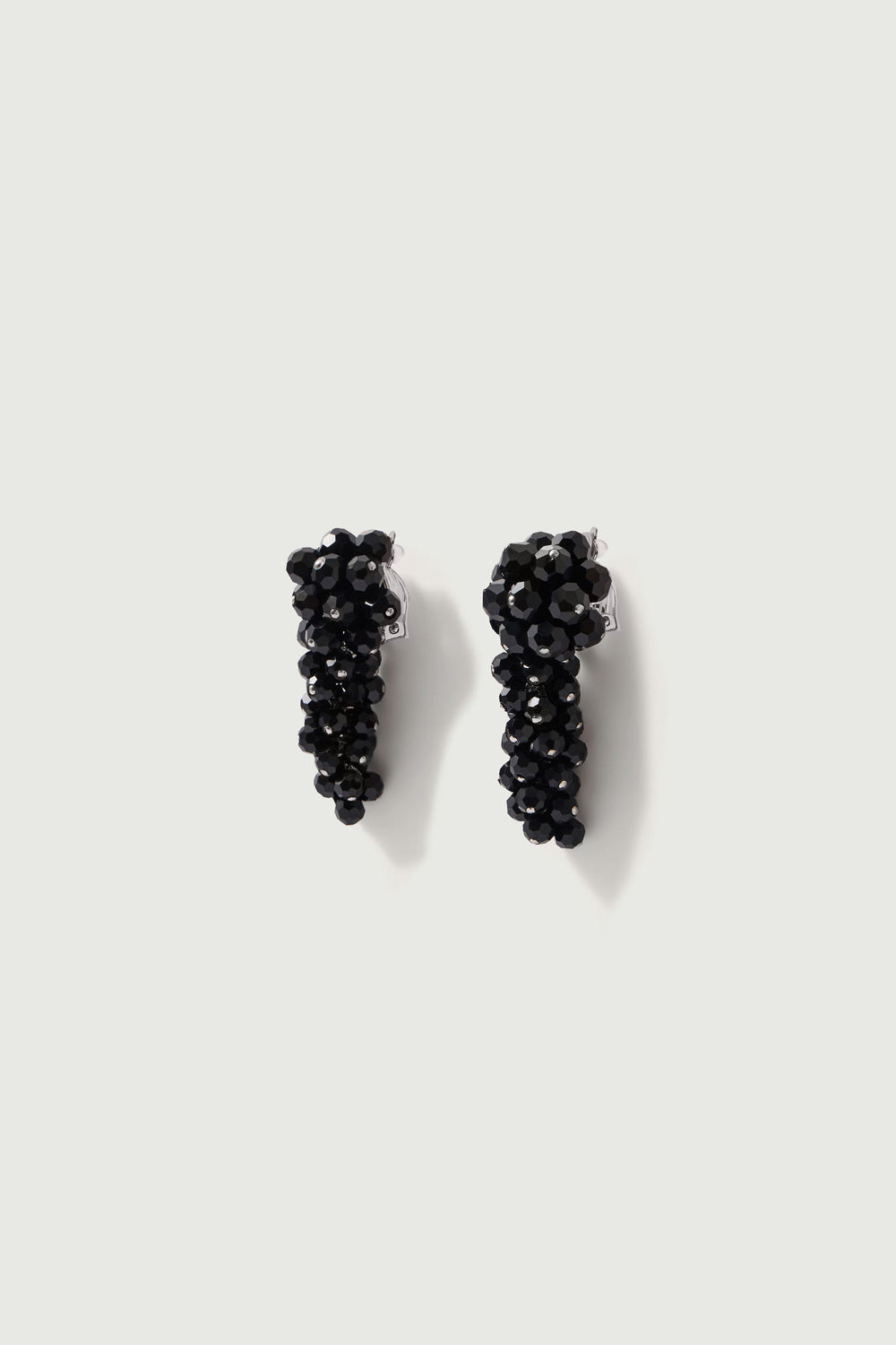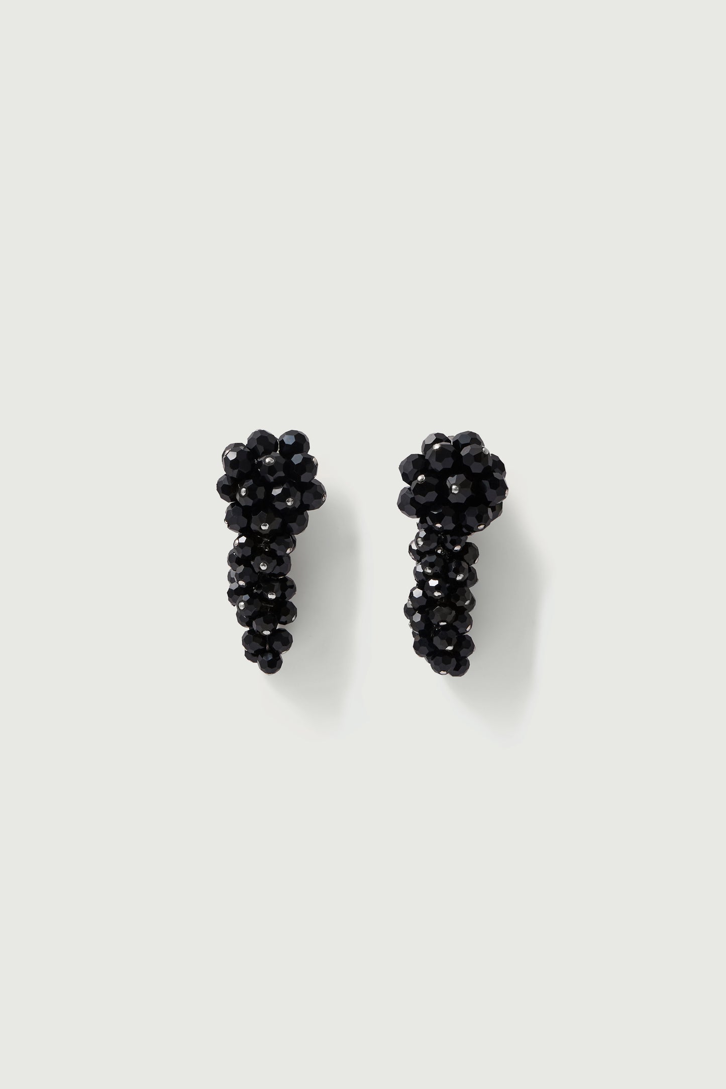 DOROTHY è un paio di orecchini con chiusura a clip. Ricorda un'idea a grappolo ed è realizzato con perle di vetro sfaccettate nere.