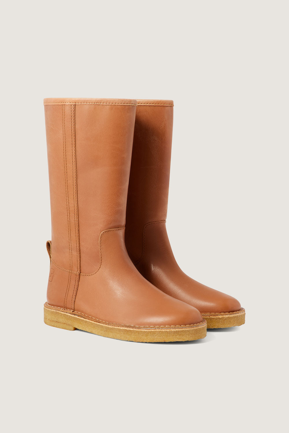 Stivali in pelle cognac- Stivali dritti larghi da mettere su una spessa terreno di pancake- altezza dell'asta 30 cm- altezza del tallone 3 cm-lwg