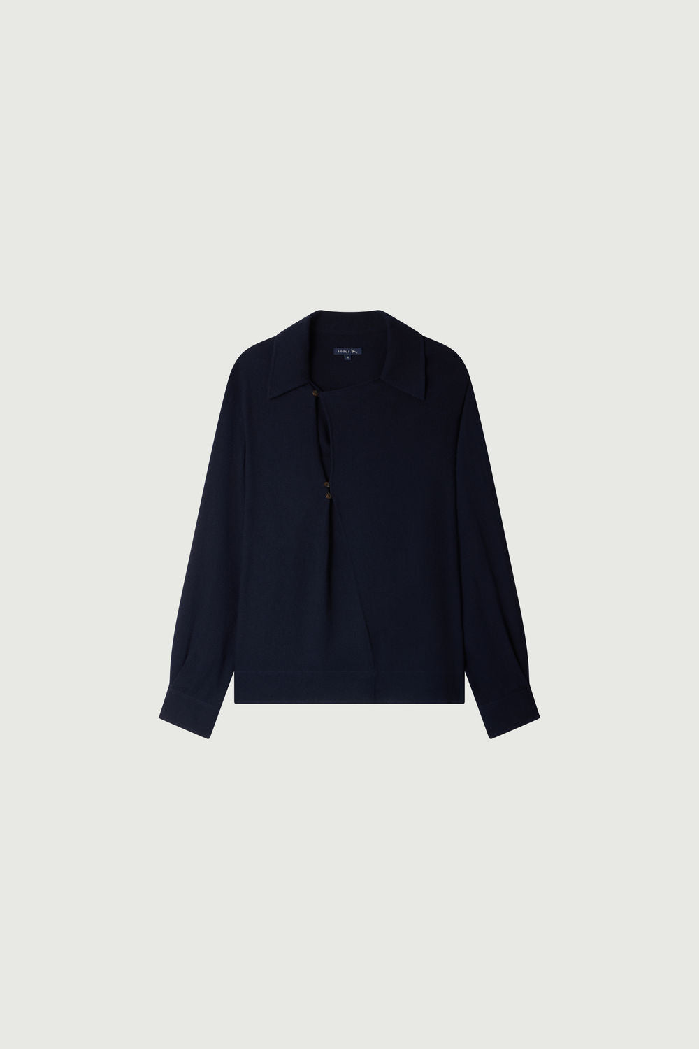 CAMELIA è una blusa in crêpe di lana leggera. Questa è ideale per un look chic e raffinato, combinando comfort e sofisticazione grazie a un tessuto arioso di crêpe di lana sottilmente trasparente.
