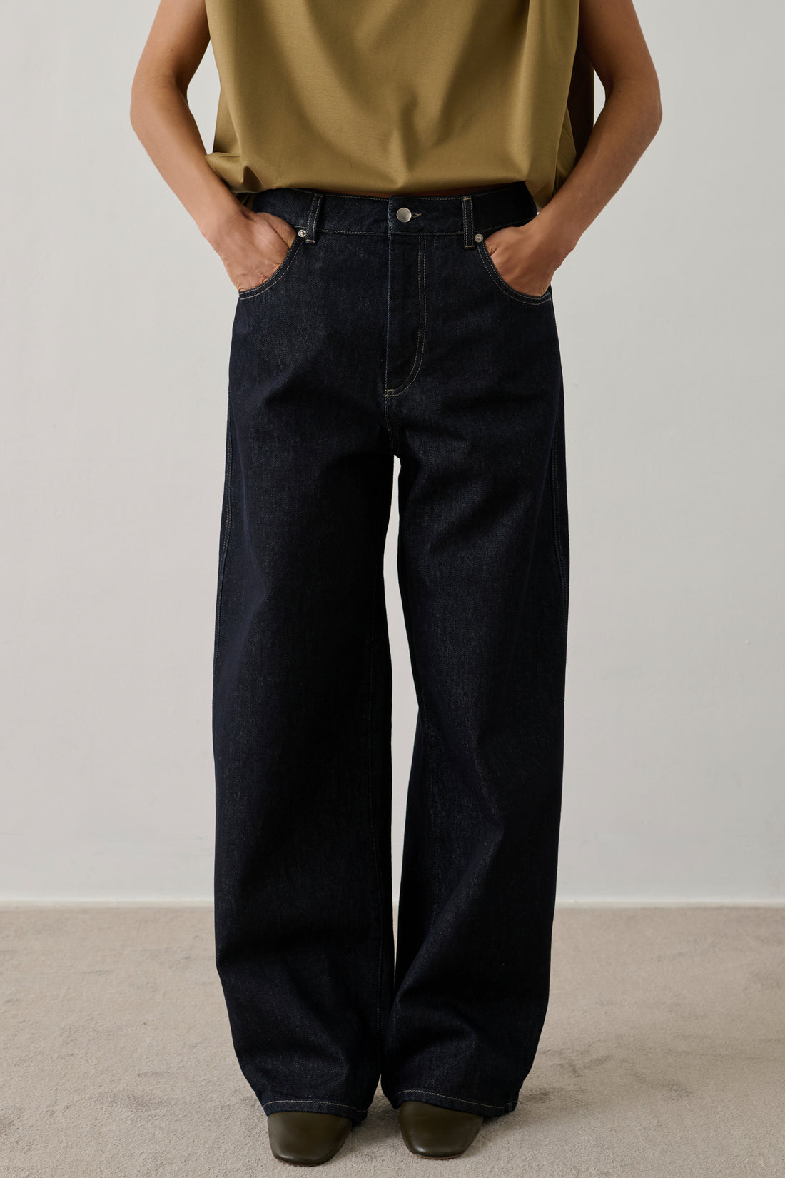 - Dettagli con passante a martingala e rivetti sul retro