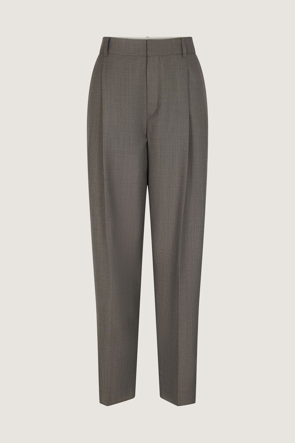 John è pantaloni alti realizzati in una lana molto fine e leggermente lucida (Super 120s).