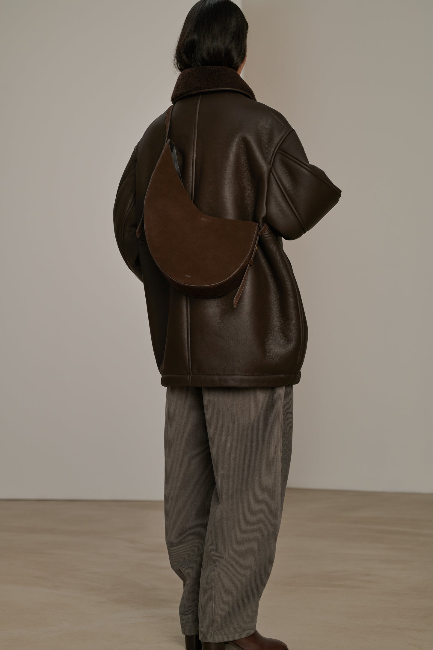 Borsa in crosta di cuoio marrone scuro marrone scuro